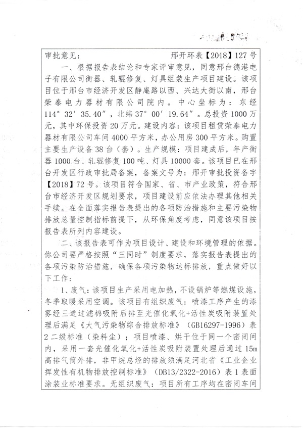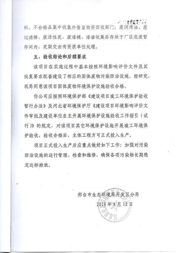 > 新聞動(dòng)態(tài) > 關(guān)于邢臺(tái)德港電子有限公司竣工環(huán)境保護(hù)驗(yàn)收合格的函